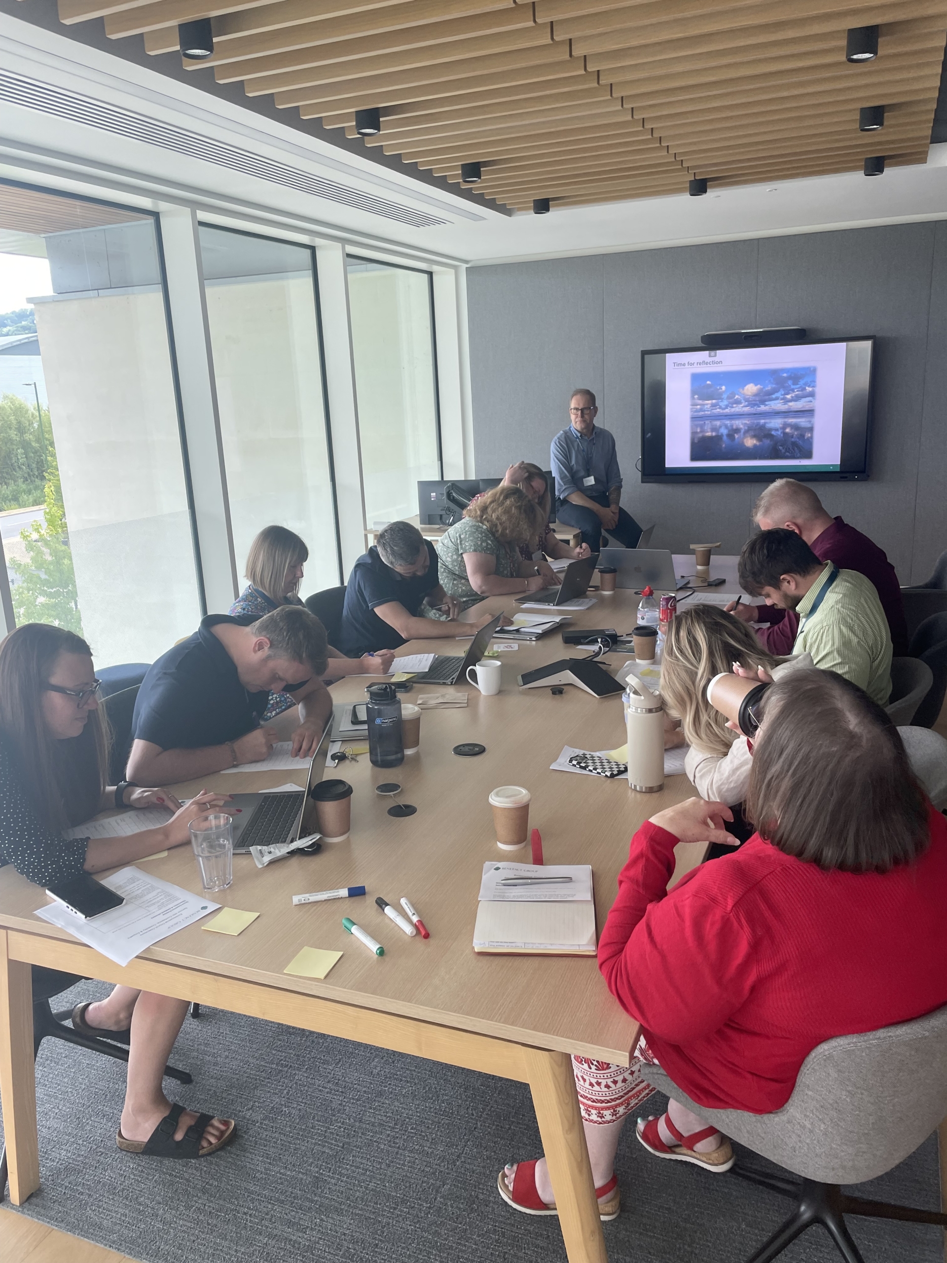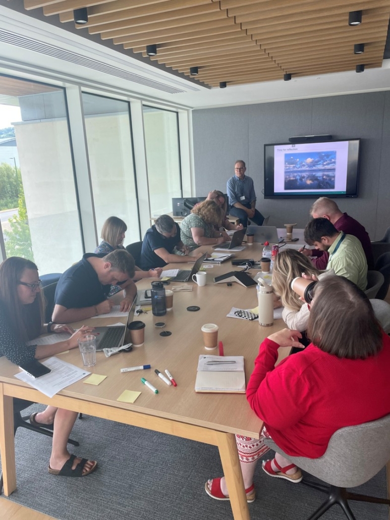 The photo shows the team hard at work, reflecting during the final session of their coach development programme